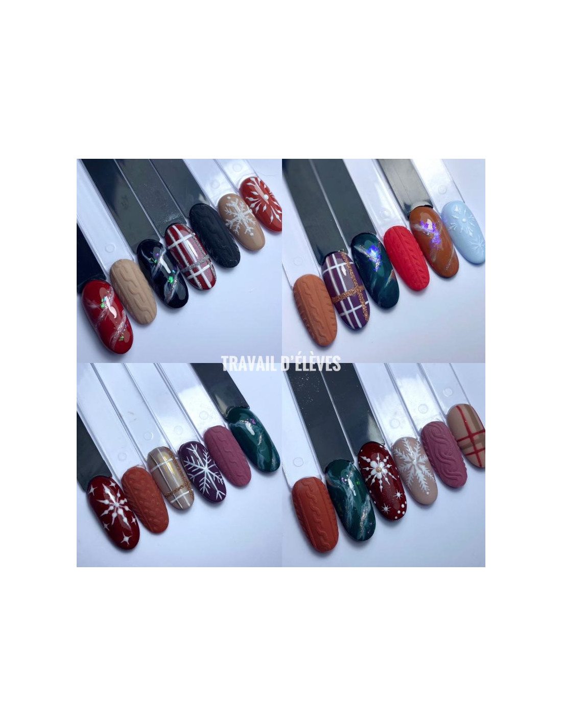 Plongez dans l’univers du nail art saisonnier et apprenez à réaliser des décorations rapides et tendances, parfaitement adaptées au travail de salon. Babyboomer, babycolor, dégradés, effet pull et autres designs faciles à reproduire : vous repartirez avec une multitude d’idées à proposer à vos clientes dès le lendemain.