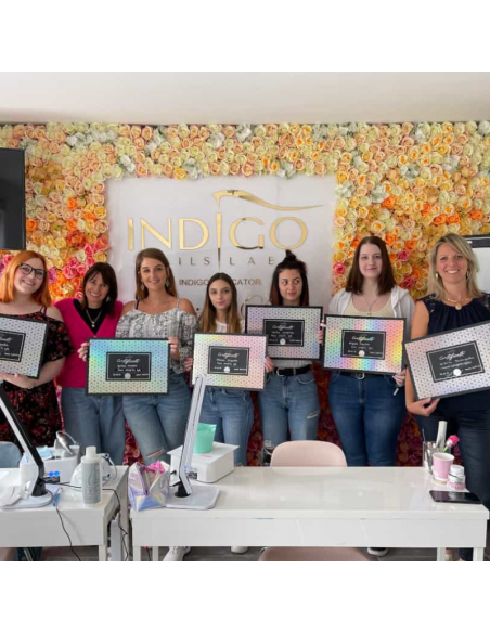 - La formation se termine par un examen théorique et pratique, lequel constitue la condition d’obtention d’un diplôme certifié Indigo Nails Lab