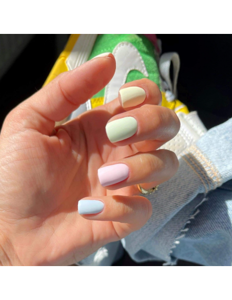 - Application de la couleur en vernis semi permanent au plus près des cuticules et finition